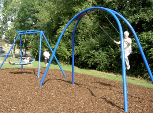 ARCO COLUMPIO FABRICADO CON TUBO DE 3" CEULA 30, LARGO 4.8 M ALTURA 3 M, CUERDA Y ASIENTO PLASTICO