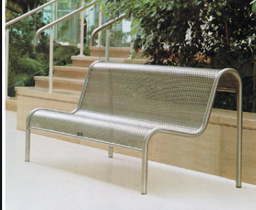 Banca Para interior y exterior. Fabricada con tubo de 1 1/2 cal 16. Malla perforado 1/8 cal 16