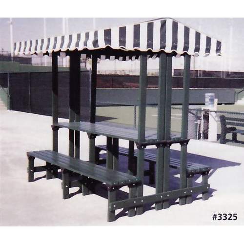 fabricada en estructura de acero, pintada del color a las necesidades del cliente, madera tratada para la interperie, toldo de lona 16 onzas