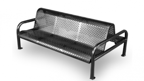 Banca DOBLE para centros comerciales, o parques, fabricada con lámina perforada con perforación de 1/4 de pulgada, tubo acero 2 Pulgadas cal 16, soleras