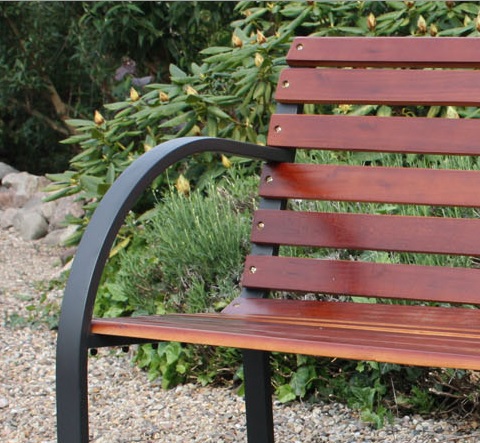 La  Banca de madera MenorKK de  acero y madera son ideales para un  escenario al aire libre o jardín para crear un  lugar cómodo  para sentarse.