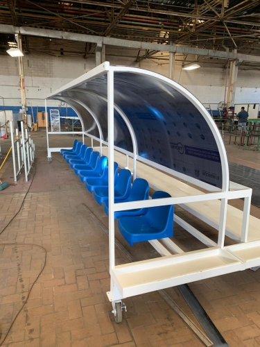 Fabricada en acero,  asientos de estadio y policarbonati celular