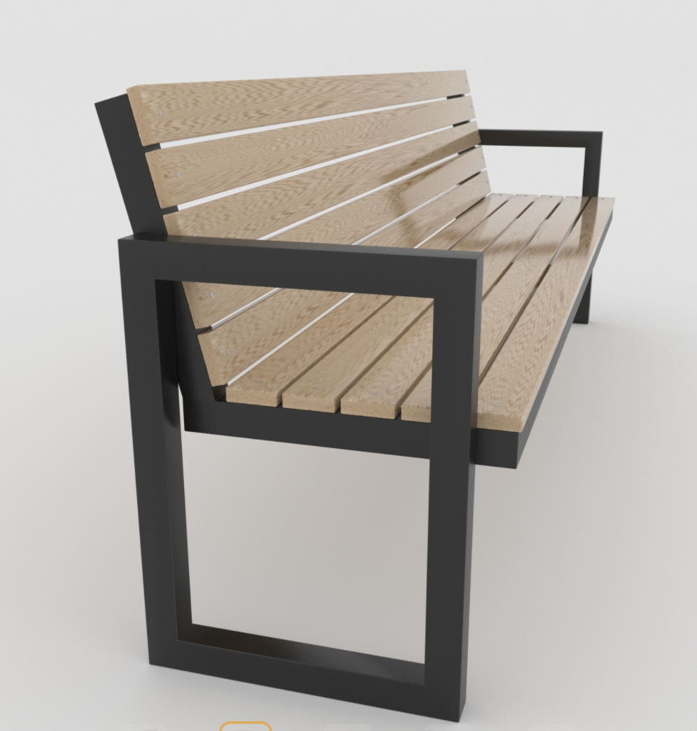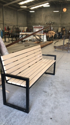 BANCA PARA PARQUES, SOPORTE DE ACERO PTR DE 1 1/2 CAL 1/4, SOLERA Y ANGULO, ASIENTO Y RESPALDO DE TABLONES DE PLASTIMADERA