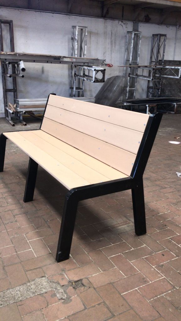 BANCA PARA PARQUES FABRICADA CON PLASTIMADERA Y ACERO, MEDIDA 1.80 M DE LARGO 45 CM DE FONDO, ALTURA 75 CM