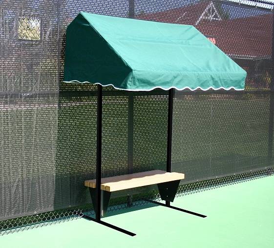 Banca de Tenis para cancha de tenis modelo BT03medida 1.6 m estructura de acero, fabricado en polin 3\", ba se triangular de acero, madera tratada para la intemperie, altura 1.80 m, fondo 1 m ya con la ba se, asiento fondo 50 cmTecho fabricado con polyester o malla sombra