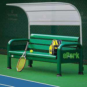 BANCA DE TENIS FABRICADO CON PERFILES DE ALUMINIO EN RESPALDO Y ASIENTOS CON TECHO CORTO, MEDIDA 1.80 M ALTURA CON TECHO 1.80 M FONDO 50 CM