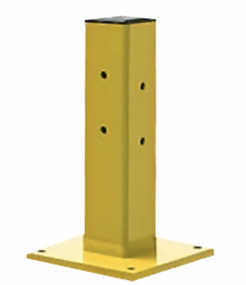 • Postes - Postes de acero cuadrados de 4" de ancho y 1/4" de grosor sostienen barandales sencillos, dobles o triples. Soldados a las bases de acero de 5/8" de grosor.
