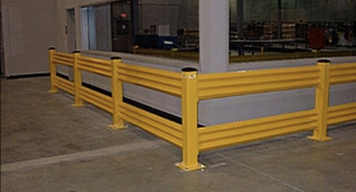 • Barandales de Protección de 2 Crestas - Previenen que traspase un montacargas con 10,000 lbs. de carga a 6 km/h. Acero calibre 12.