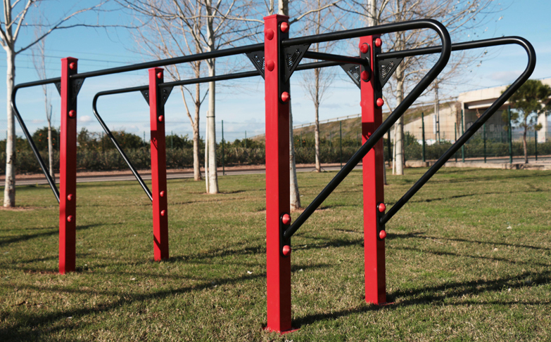Fabricado con perfiles y tubos de acero al carbón, preparación para ahogar al piso, medida total de la barra 3.5 m altura de barras 1.22 m, altura total 1.35 m