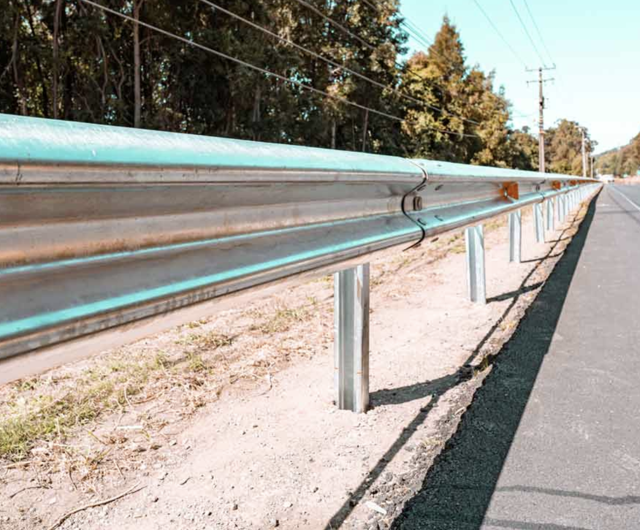 Defensas viales de doble onda compuestas de acero que tienen el propósito de aumentar la seguridad en las carreteras y reducir la gravedad de los accidentes.