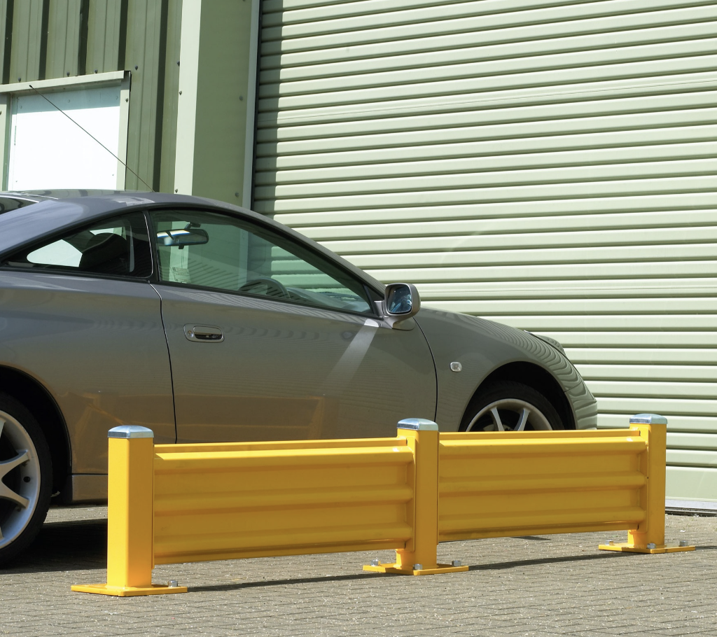 BARRERA DIVISORIA DE 2 CRESTAS 3 POSTES MEDIDA DE LARGO 3 M X 40 CM DE ALTURA, PARA DIVIDIR ÁREAS, POSTES PTR DE 3", PLACA PARA FIJAR AL PISO DE 1/4, DE 20 CM X 20 CM, PINTURA ELECTROESTÁTICA
