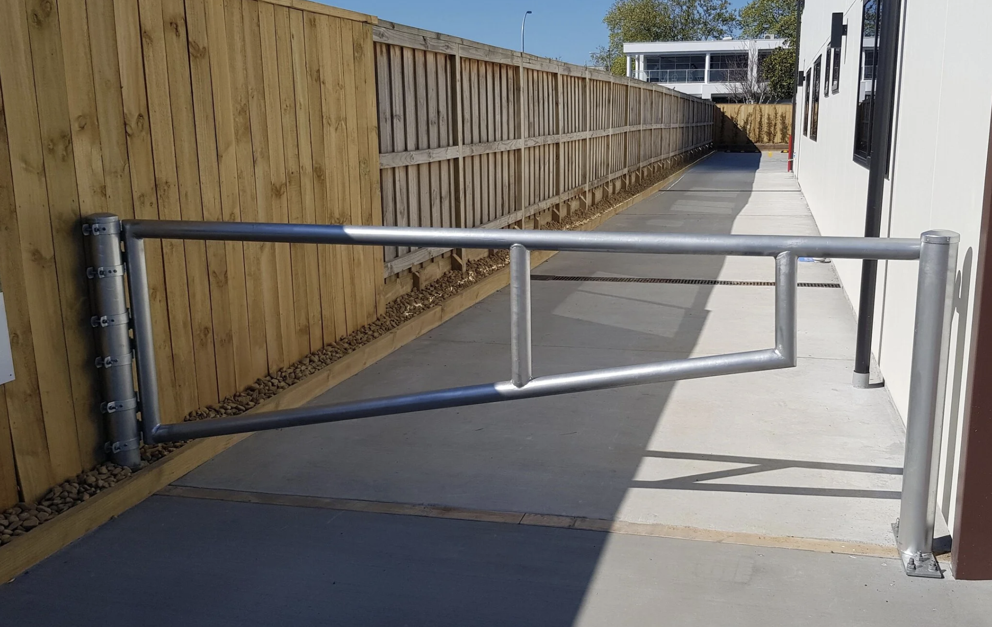 BARRERA PARA ACCESO FABRICADA CON PERFILES DE ACERO, ES MANUAL TOTALMENTE