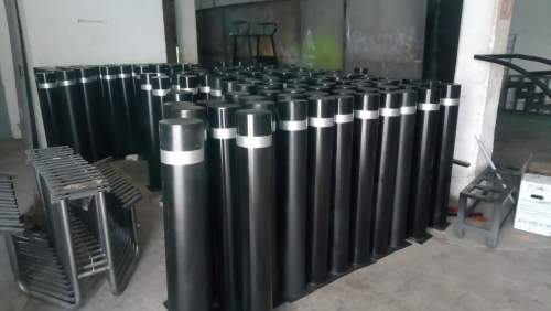 BOLARDO METÁLICO FABRICADO CON TUBO CÉDULA 30 ALTURA 1.20 M PUNTA PLANA, PLACA PARA ATORNILLAR AL PISO O VARILLA PARA AHOGAR