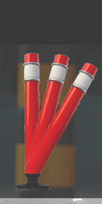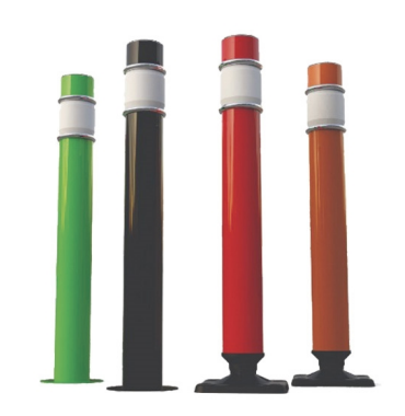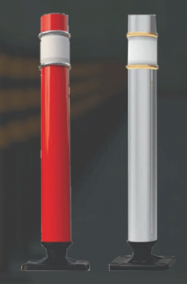 Bolardo abatible: con base de ABS y sistema interno que le permite inclinarse cuando es golpeado; recuperando inmediatamente su posición vertical después de ser abatido.