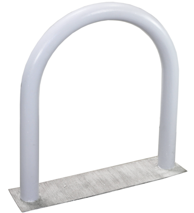 BOLARDO DE SEGURIDAD PARA BOMBAS DE GASOLINA, FABRICADOS CON TUBOS DE 4 " CÉDULA 40 CURVOS, CON PREPARACIÓN PARA AHOGAR O PLACA PARA ATORNILLAR, MEDIDA 1.10 M DE LARGO X 80 CM DE ALTURA