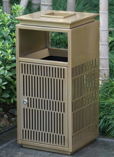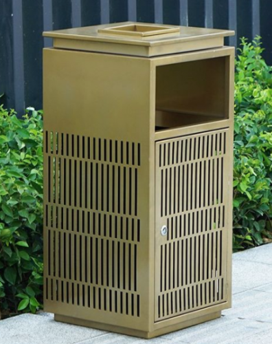 BOTE BASURA ACERO RECTANGULAR, MOVIBLE, FABRICADO CON LÁMINA DE ACERO CAL 16 PERFORADO LINEAL, TAPA CON CENICERO