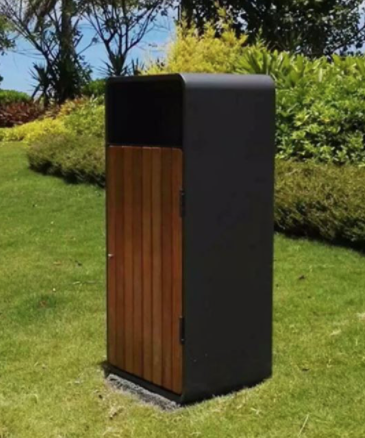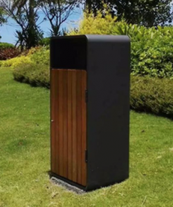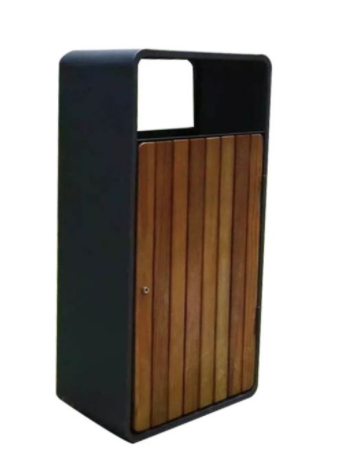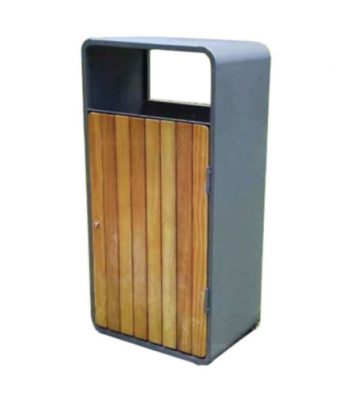 BOTE BASURA CON CUBIERTA DE ACERO Y MADERA