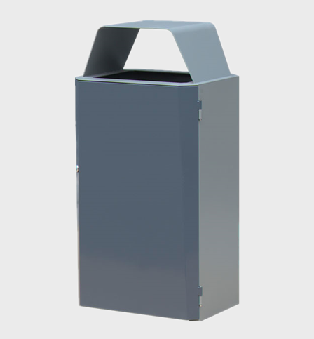 BOTE DE BASURA METÁLICO FABRICADO CON LAMINA CAL 16 CON TAPA TRIANGULAR QUE PERMITE EL ACCESO A METER BASURA DE GRAN TAMAÑO