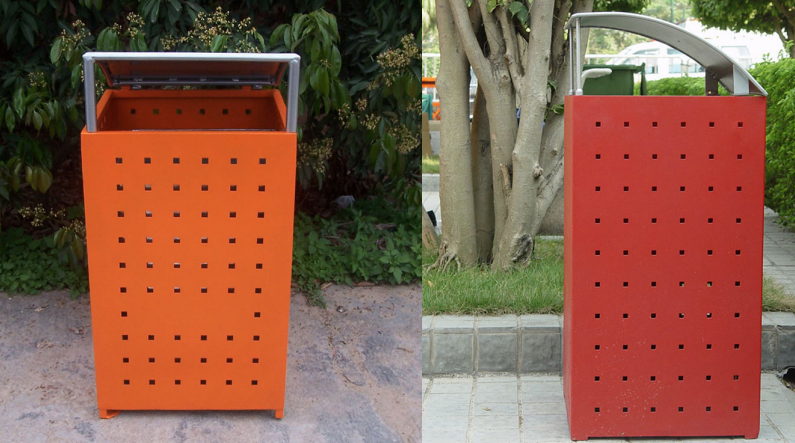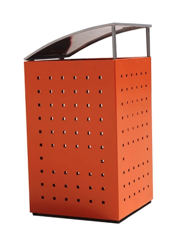 Bote de basura fabricado en acero y acero inox, lámina perforada (perforación de 1/4) de acero, tapa de inoxidable desprendible