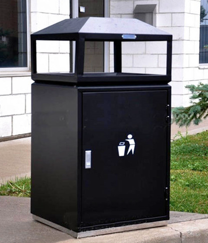 BOTE BASURA FABRICADO CON LAMINA CALIBRE 16, TAPA EN FORMA DE PIRAMIDE