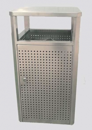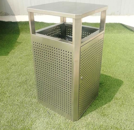 Bote de basura, fabricado en acero al carbón, pintura aluminio electroestática, lámina perforado círculos de 1/8,