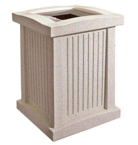 BOTE DE BASURA CONCRETO, TAPA REMOVIBLE, PREPARACIÓN PARA FIJAR AL PISO