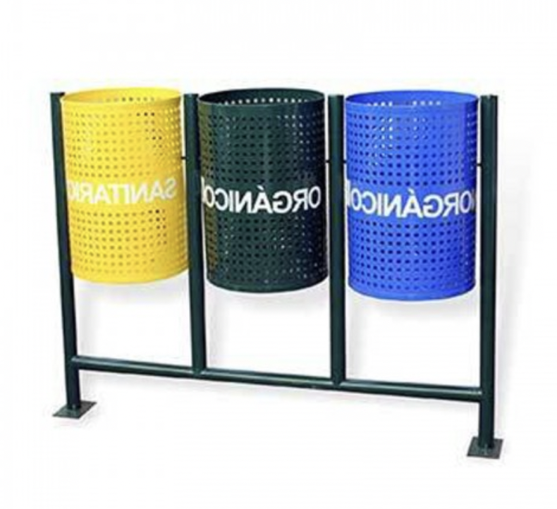 BOTE DE BASURA MODELO BB300, INCLUYE 3 BOTES DIFERENTES COLORES, FABRICADO CON MALLA PERFORADA, SOLERA, TUBO DE 2"