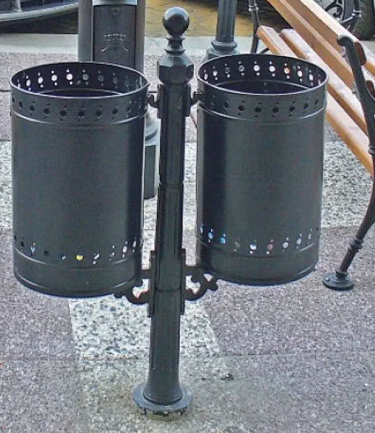 BOTE DE BASURA COLONIAL FABRICADO EN ACERO CON POSTE DE ALUMINIO,
