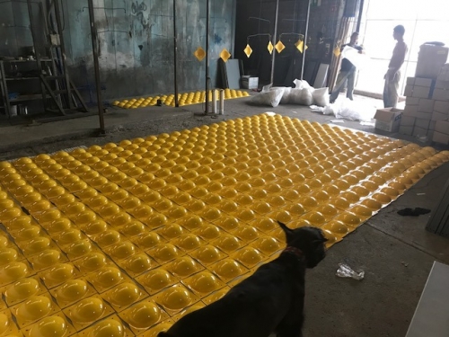 Boya Metálica Troquelada 22x22cm x 6.5cm de Alto, Fabricada en lámina de acero Cal.10, Acabado en Pintura Electrostática disponible en color amarillo de línea,