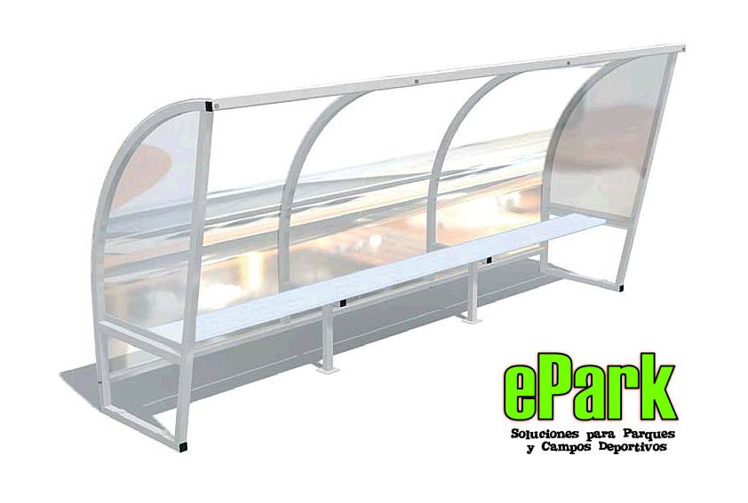 Banca para equipos deportivosMedida 5 m x 1.80 m de alturaAsiento y Respaldo Aluminio 25 cmAcrílico Ahumado 3 mmLaterales Adicionales costo