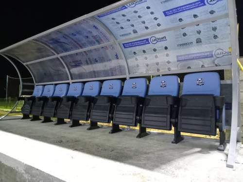 BANCA PROFESIONAL PARA JUGADORES.ASIENTOS DE PLÁSTICO PARA ESTADIO, CON OPCIÓN A ASIENTOS GAMER.CUBIERTA MALLA SOMBRA, CON OPCIÓN A POLI CARBONATO O MULTI LONA.MEDIDAS 5.70 LARGO X 2M DE ALTO Y