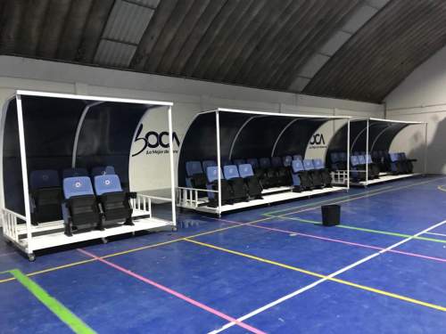Banca para 16 jugadores, asientos vip, muy cómodos, reclinable, y soporte para cuello y cabezamedida de largo 10 m, altura 1.80 m, profundidad 1.40 m Especial para equipos de futbol americano