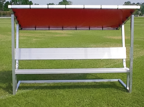BANCA DE JUGADORES 3 M DE LARGO, BANCA Y RESPALDO DE PERFIL ALUMINIO, TECHO DE ESTRUCTURA DE ACERO CON LONA O MALLA SOMBRA1.50 M DE FONDO
