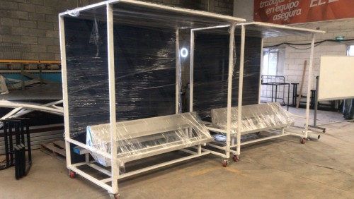 BANCA PARA JUGADORES POLICARBONATO ASIENTO Y RESPALDO DE ALUMINIO,  MEDIDA DE ANCHO 3 M, ALTURA 2.20 M PARED TRASERA Y TECHO DE POLICARBONATO, ESTRUCTURA DE ACERO PTR OPCIONAL, LLANTAS