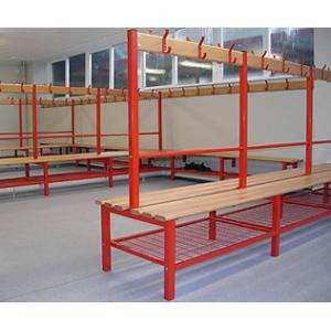 Banca doble para vestidores con repisa para zapatos de madera tambien fabricada con estructura de acero PTR 1 1/2" calibre 14 Madera tratada, pulida, y con acabado redondeador en las esquinas   Media 2