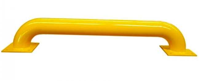 Bolardo de seguridad de 1.20 m de largo x 20cm de altura, fabricado con tuberia galvanizada de 3" cedula 30, pintura anticorrociópn amarillo seguridad