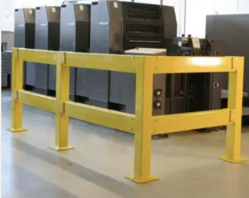 BARRERA DE PROTECCIÓN DE MAQUINARA Y EQUIPO, MEDIDA TOTAL 1.40 M X 1.10 M DE ALTURA, FABRICADA CON TUBO DE 3" CED 30, CON CURVATURA, LÁMINA GALVANIZADA CAL 16, PLACA DE