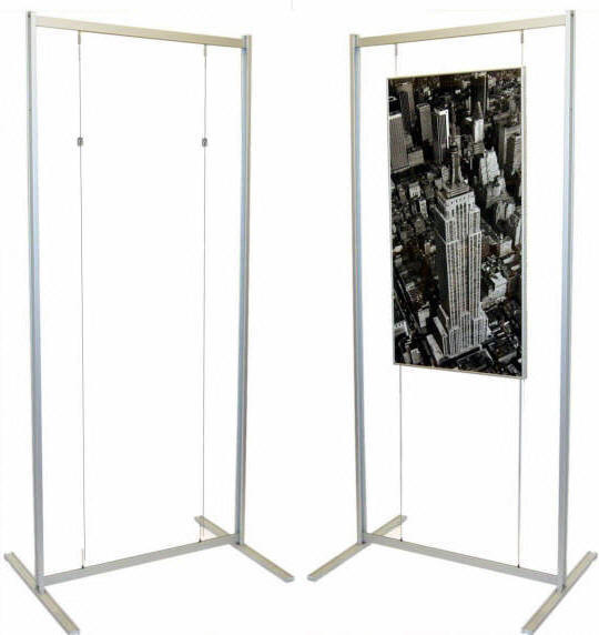 mide 1m de ancho x 2.44 m de altura, fabricado en octanorm, peffiles de aluminio y Tenso Chapas de 3 uñas