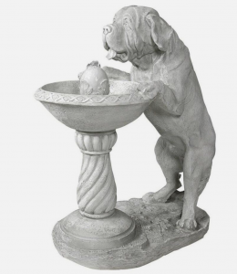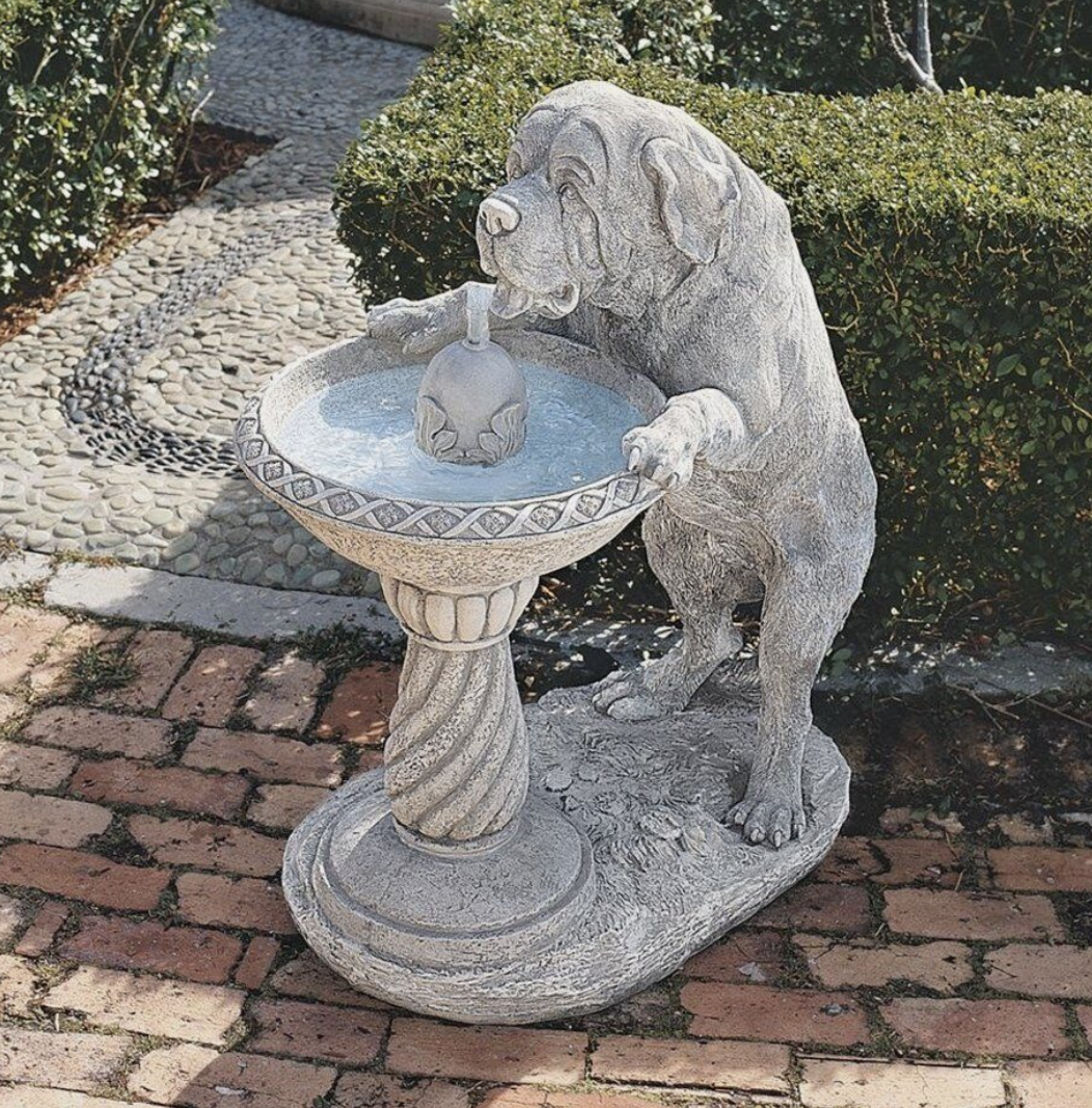 FUENTE PARA PERROS: nuestro amigo canino San Bernardo no es el único que se sentirá atraído por la agradable melodía del agua que burbujea desde el orbe central hacia el generoso lavabo de esta fuente de agua para perros de estilo europeo.