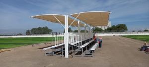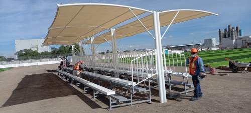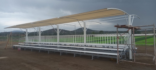 GRADA ACERO 10M X 3 FILAS DE ASIENTOS TECHADAS MALLA SOMBRA