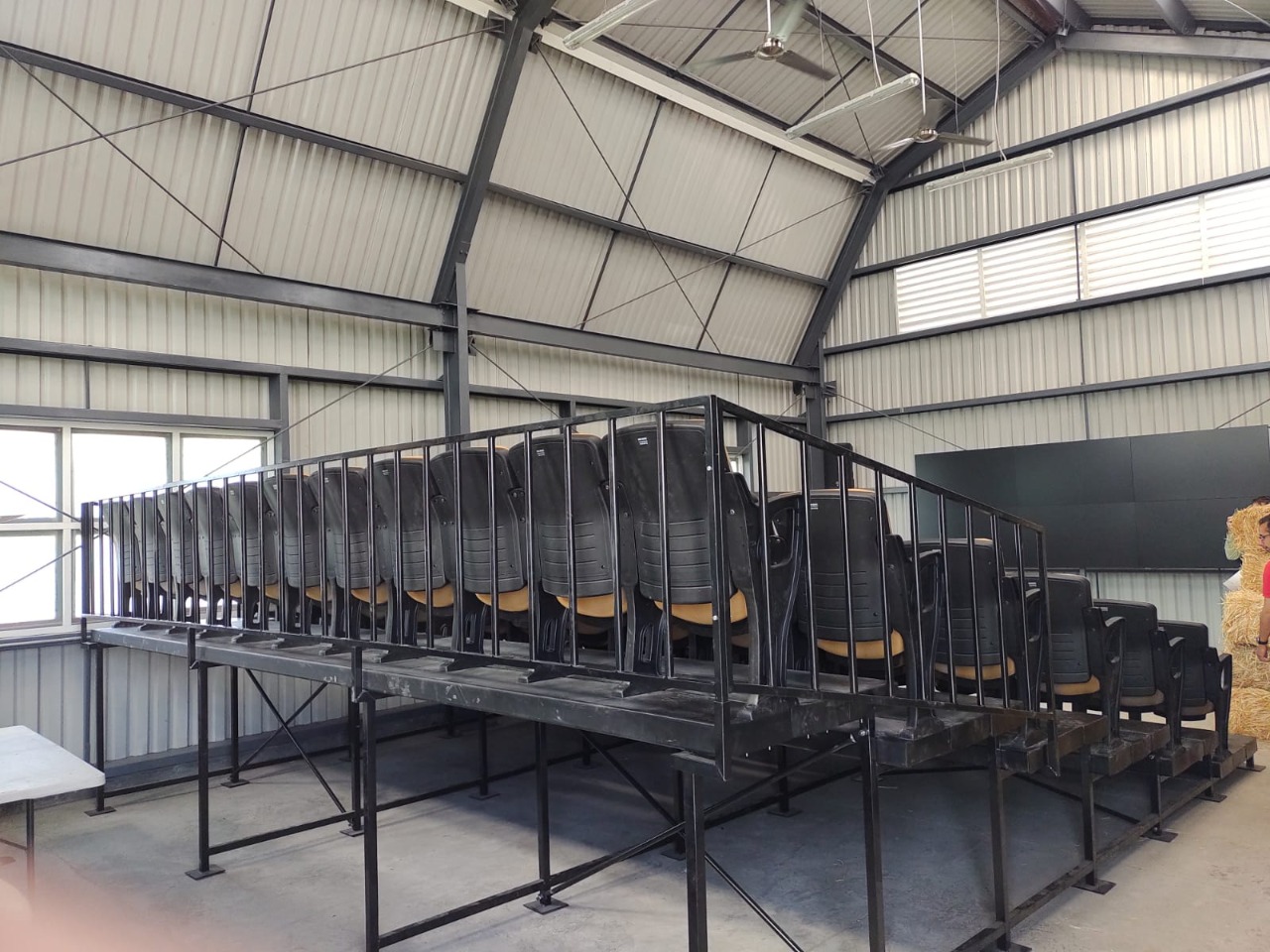 GRADA ESTRUCTURA DE ACERO, MEDIDA 6 M X 6 FILAS DE ASIENTOS, BARANDAL POPOTE