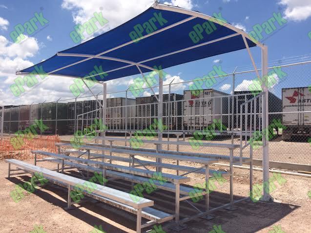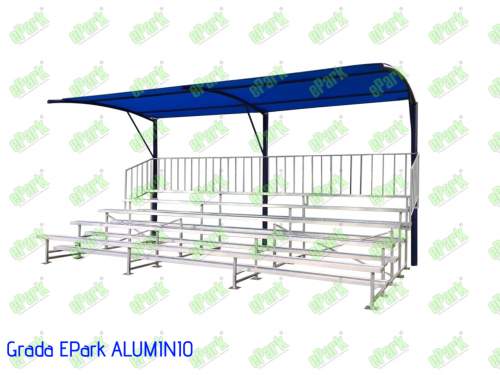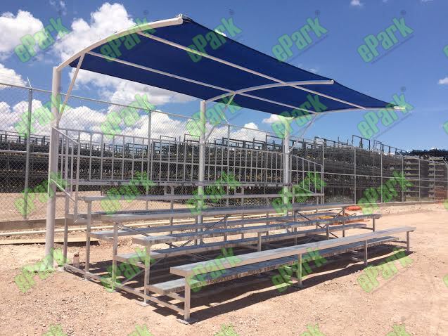 GRADA ALUMNIO 6M X 5 LINEAS DE ASIENTOS, CON TECHO MALLA SOMBRA