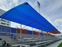 GRADA DE ALUMINIO 35 M DE LARGO X 6 FILAS DE ASIENTO, PISO DOBLE DE ALUMNO, LARGO DE LA GRADA DE 4M ALTURA ANTES DE BARANDAL1.50 M