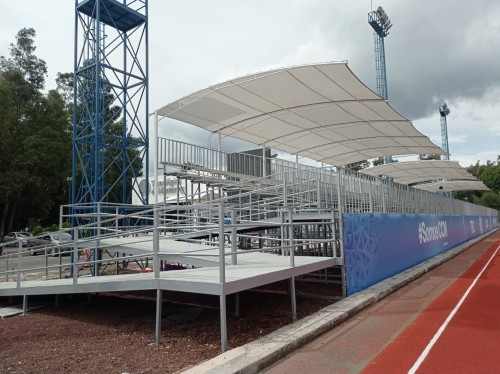 GRADA DE ALUMINIO ALTA, TECHADA DE 100 M DE LARGO X 10 FILAS DE ASIENTOS