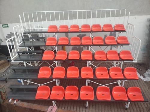 GRADA RETRÁCTIL DE 4.5 M DE LARGO X 5 FILAS DE ASIENTOS, ESTRUCTURA DE ACERO, CON LLANTAS PARA RETRAER LA GRADA A 1.20 M  X 1.80 M DE ALTURA