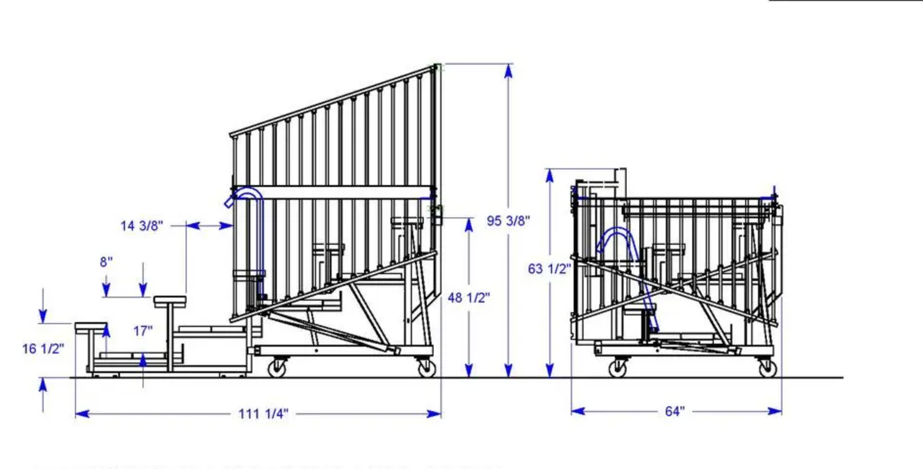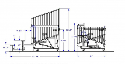 ASIENTO Y PISO DOBLE DE ALUMINIO,  MEDIDA DE LA GRADA EXTENDIDA 4.5M X 3 M X 1.30 M DE ALTURA, MÁS BARANDAL 80 CM
