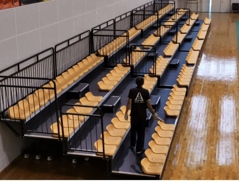 GRADA RETRÁCTIL 7.20 M DE LARGO X 4 FILAS DE ASIENTOS, TOTAL ASIENTOS 26 ASIENTOS