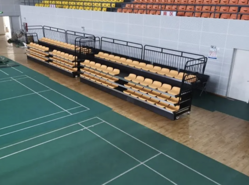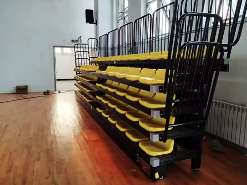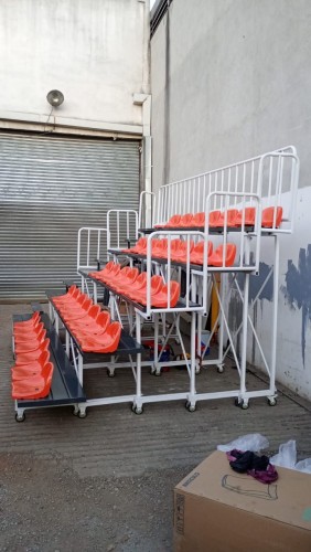 GRADA RETRÁCTIL DE 4.5 M DE LARGO X 5 FILAS DE ASIENTOS, ESTRUCTURA DE ACERO, CON LLANTAS PARA RETRAER LA GRADA A 1.20 M  X 1.80 M DE ALTURAMEDIDA EXTENDIDA
