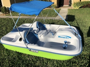 Lancha de pedales importada, capacidad 5 personas con peso maximo de 400 kg, largo 2.30 m x 1.57m, pesa 53 kg