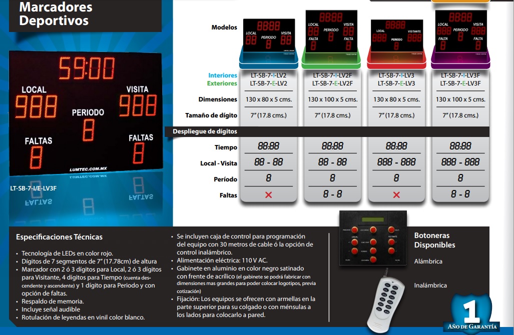 Marcador deportivo 1.30 m, cuatro  modelos diferentes